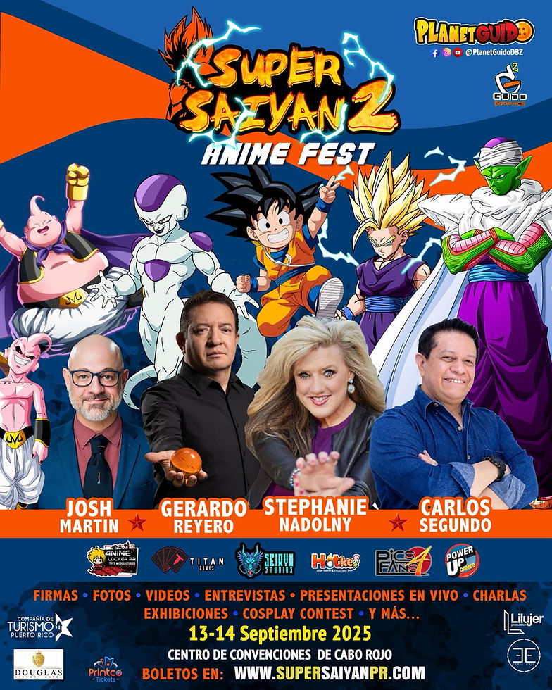 ¡Comienza la cuenta regresiva para el poder total de Dragon Ball en Puerto Rico! El Super Saiyan Anime Fest (SSAF) en su segunda edición programada para el 13 y 14 de septiembre de 2025 en el Centro de Convenciones de Cabo Rojo ha oficializado sus artistas invitados como: Stephanie Naldolny, Gerardo Reyero, Carlos Segundo y Josh Martin.